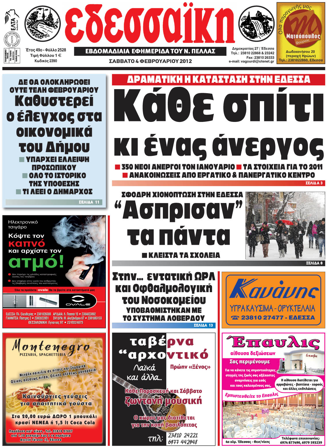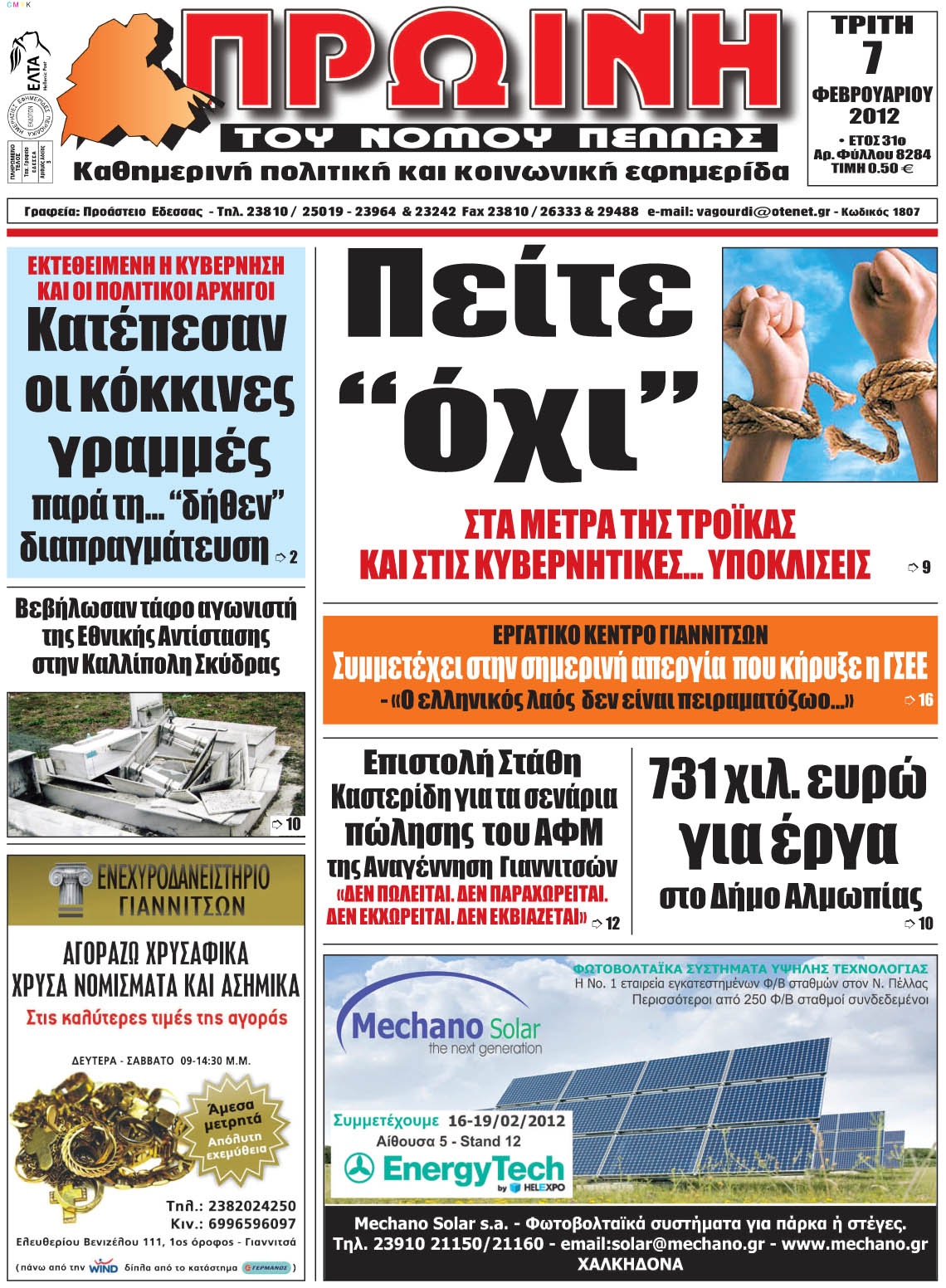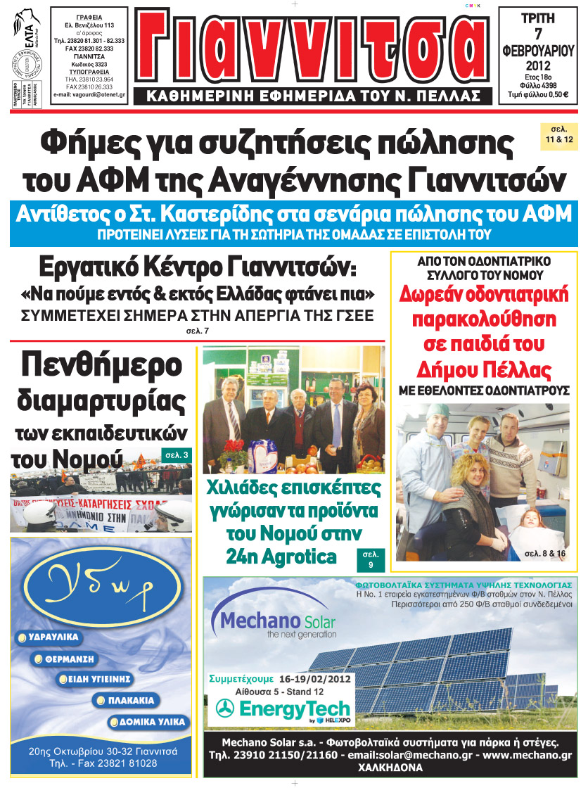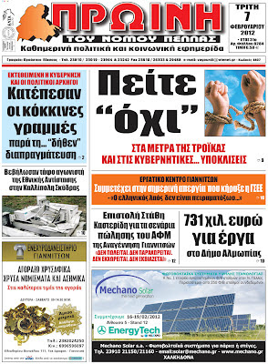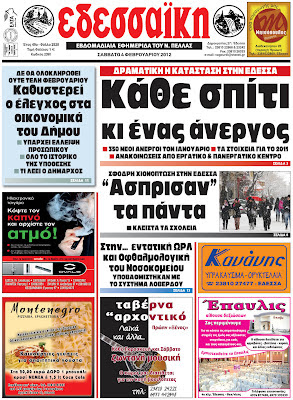 ΠΡΩΤΟΣΕΛΙΔΑ ΕΦΗΜΕΡΙΔΩΝ ΤΗΣ ΠΕΛΛΑΣ