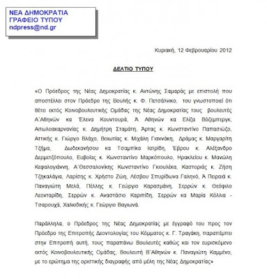 Η ΑΝΑΚΟΙΝΩΣΗ ΤΩΝ ΔΙΑΓΡΑΦΩΝ ΑΠΟ ΤΗ ΝΔ