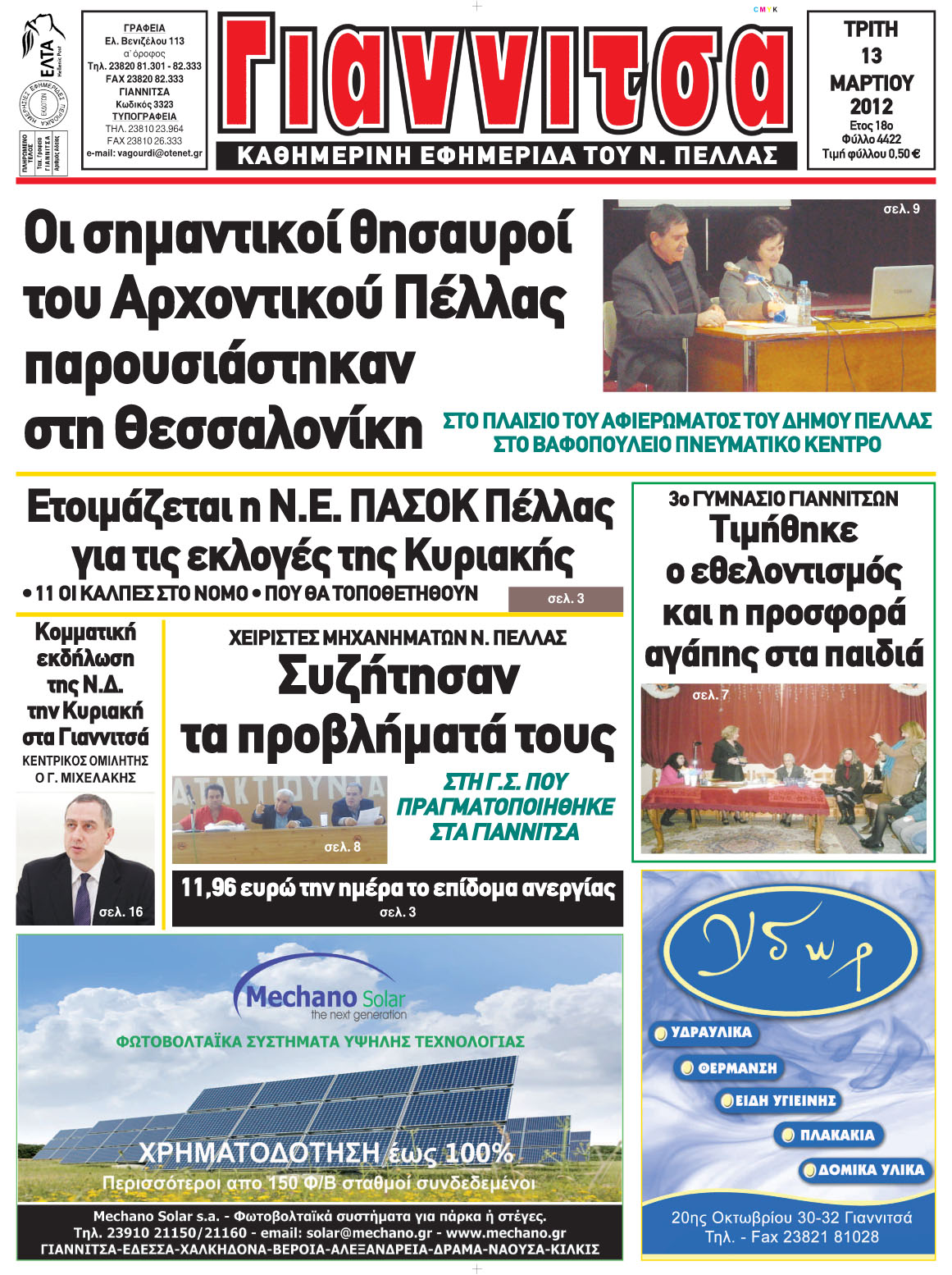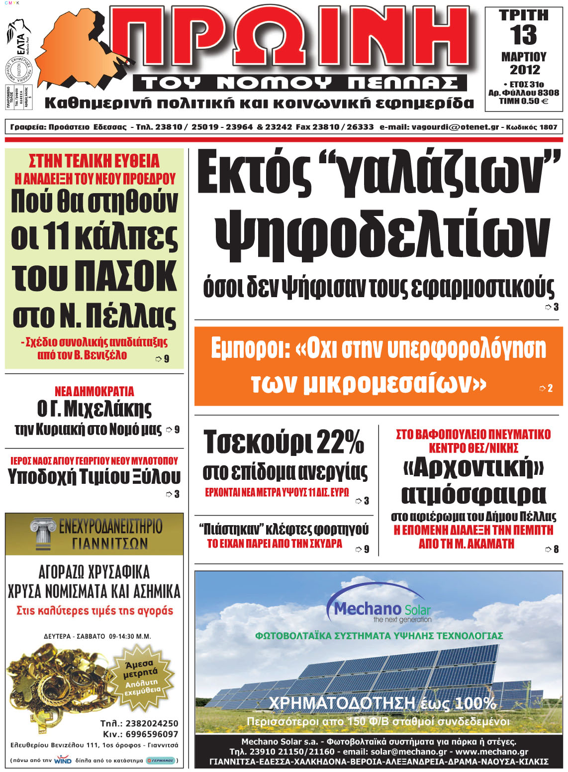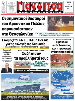 ΠΡΩΤΟΣΕΛΙΔΑ ΑΠΟ ΤΗΝ ΠΕΛΛΑ 13.03.2012