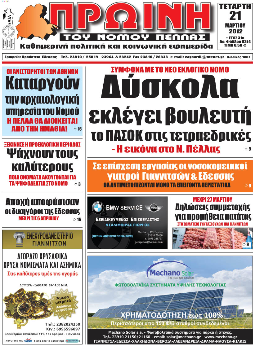 ΠΡΩΤΟΣΕΛΙΔΑ ΑΠΟ ΤΗΝ ΠΕΛΛΑ 21.03.2012