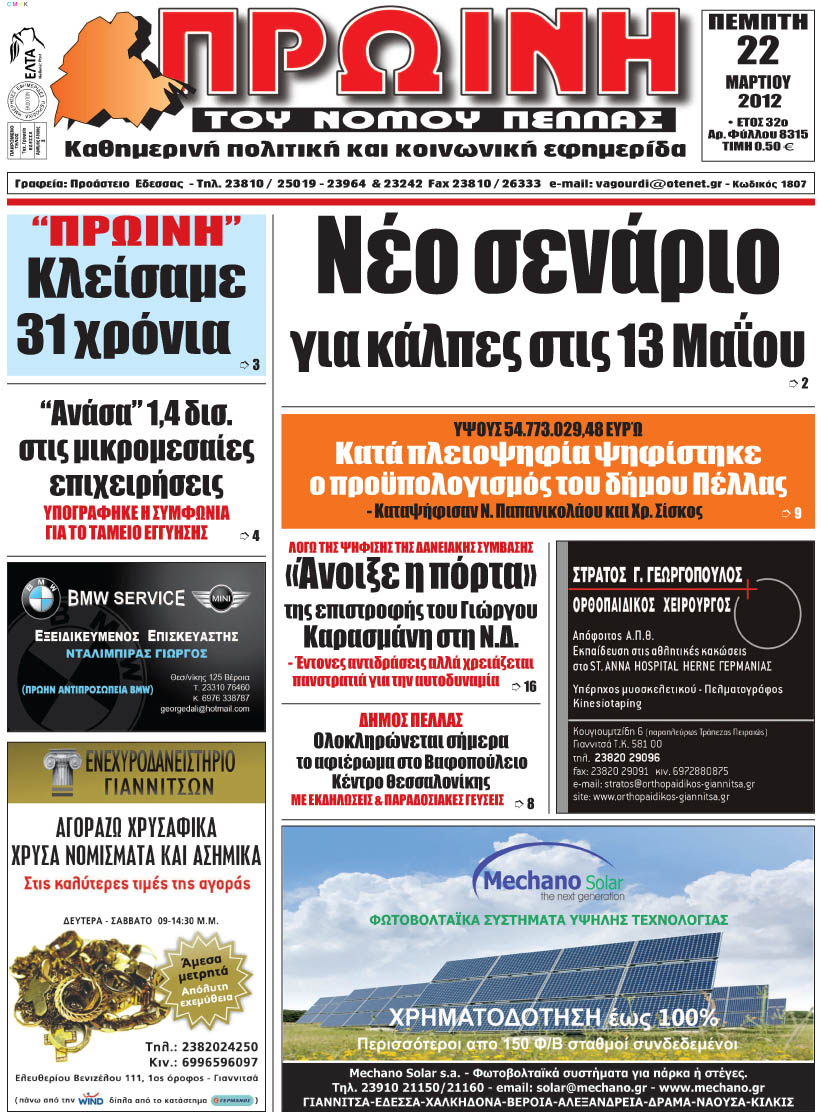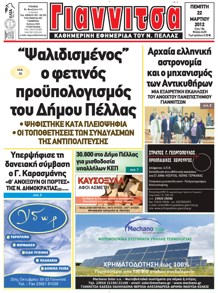 ΠΡΩΤΟΣΕΛΙΔΑ ΠΕΛΛΑΣ 22.03.2012