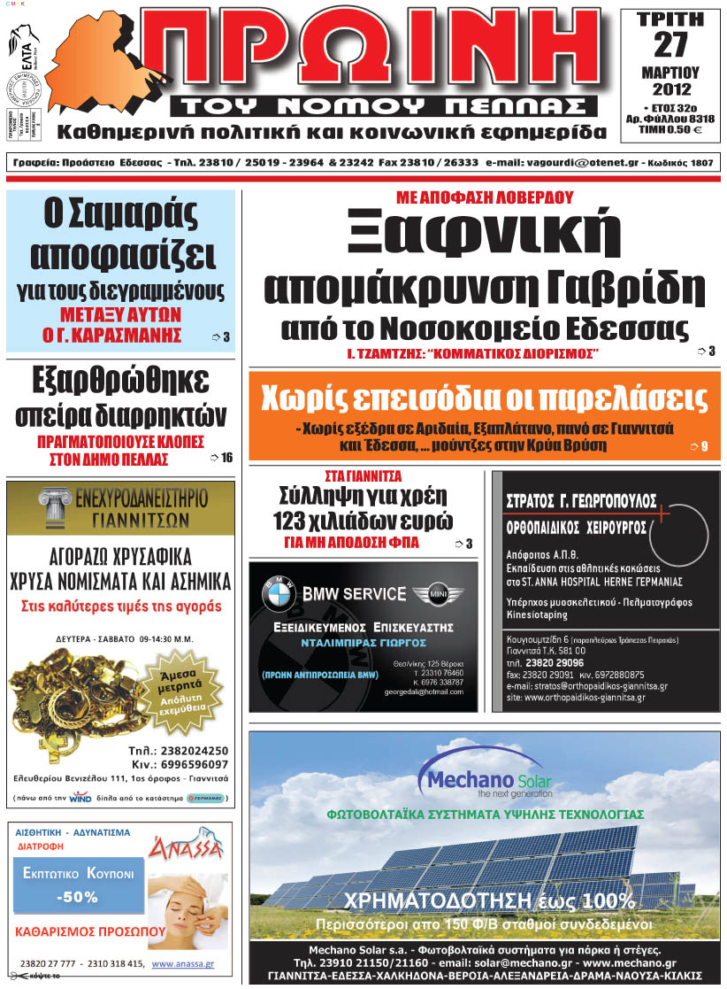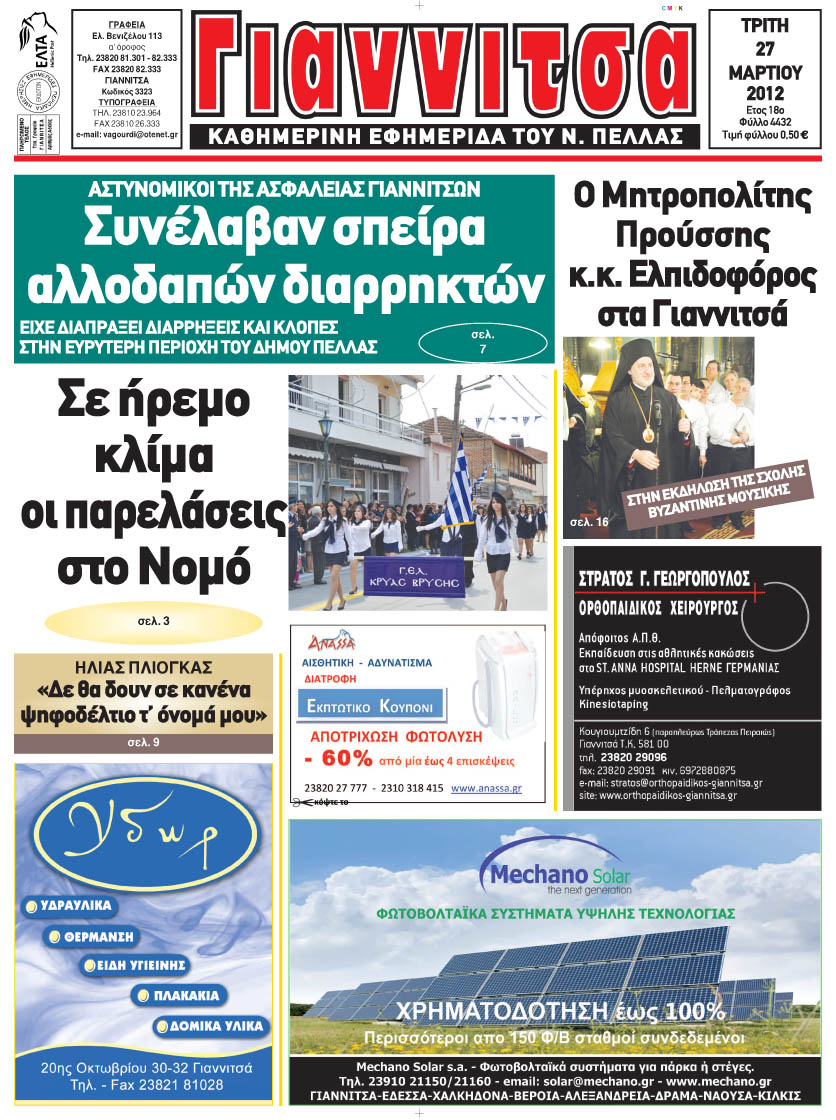 ΠΡΩΤΟΣΕΛΙΔΑ ΑΠΟ ΤΗΝ ΠΕΛΛΑ 27.03.2012