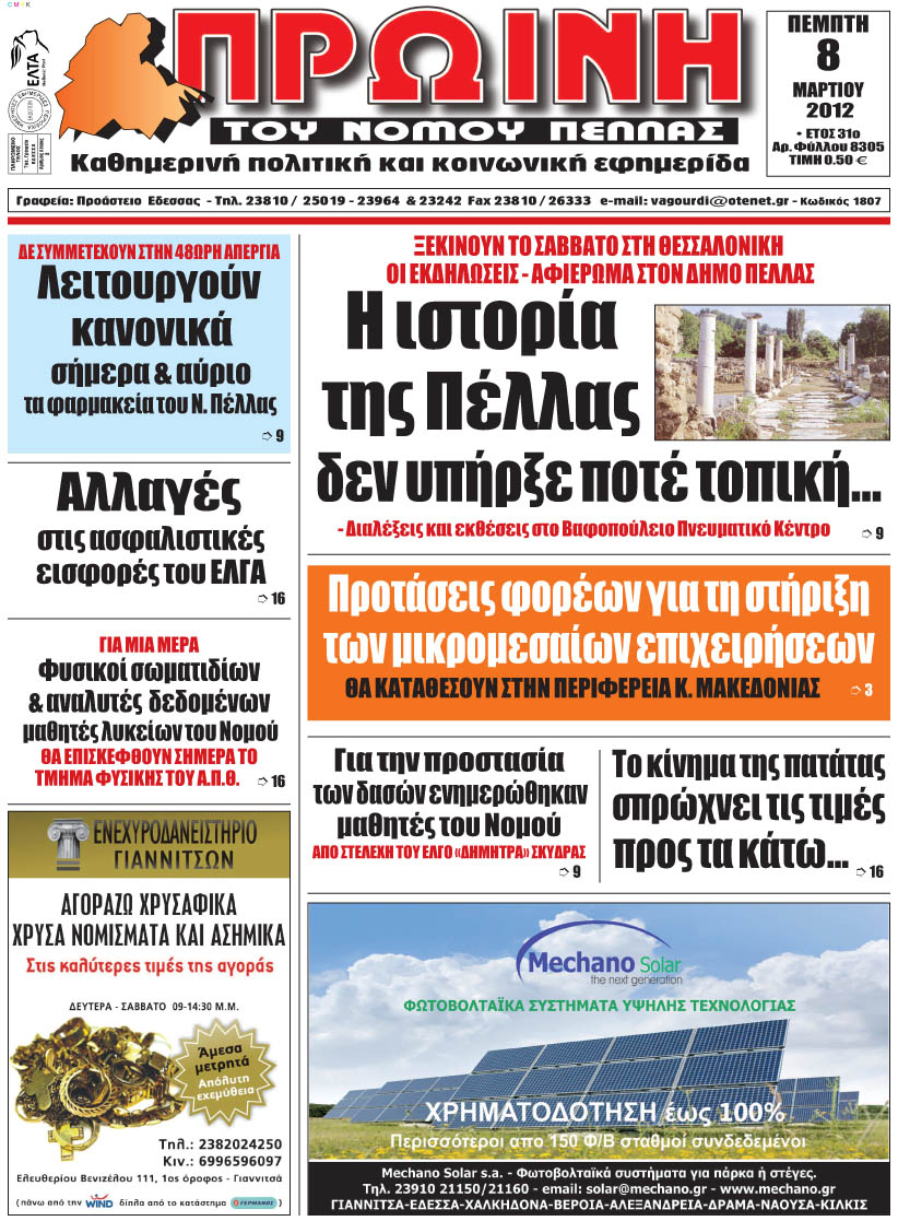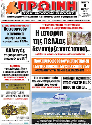 ΠΡΩΤΟΣΕΛΙΔΑ ΑΠΟ ΤΗΝ ΠΕΛΛΑ