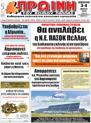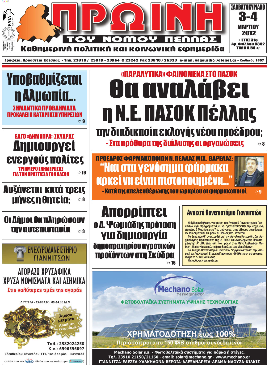 ΠΡΩΤΟΣΕΛΙΔΑ ΑΠΟ ΤΗΝ ΠΕΛΛΑ