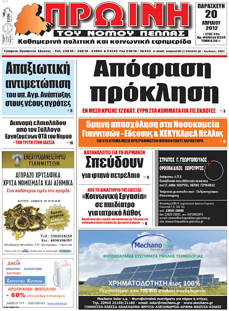 ΠΡΩΤΟΣΕΛΙΔΑ ΑΠΟ ΤΗΝ ΠΕΛΛΑ 20.04.2012