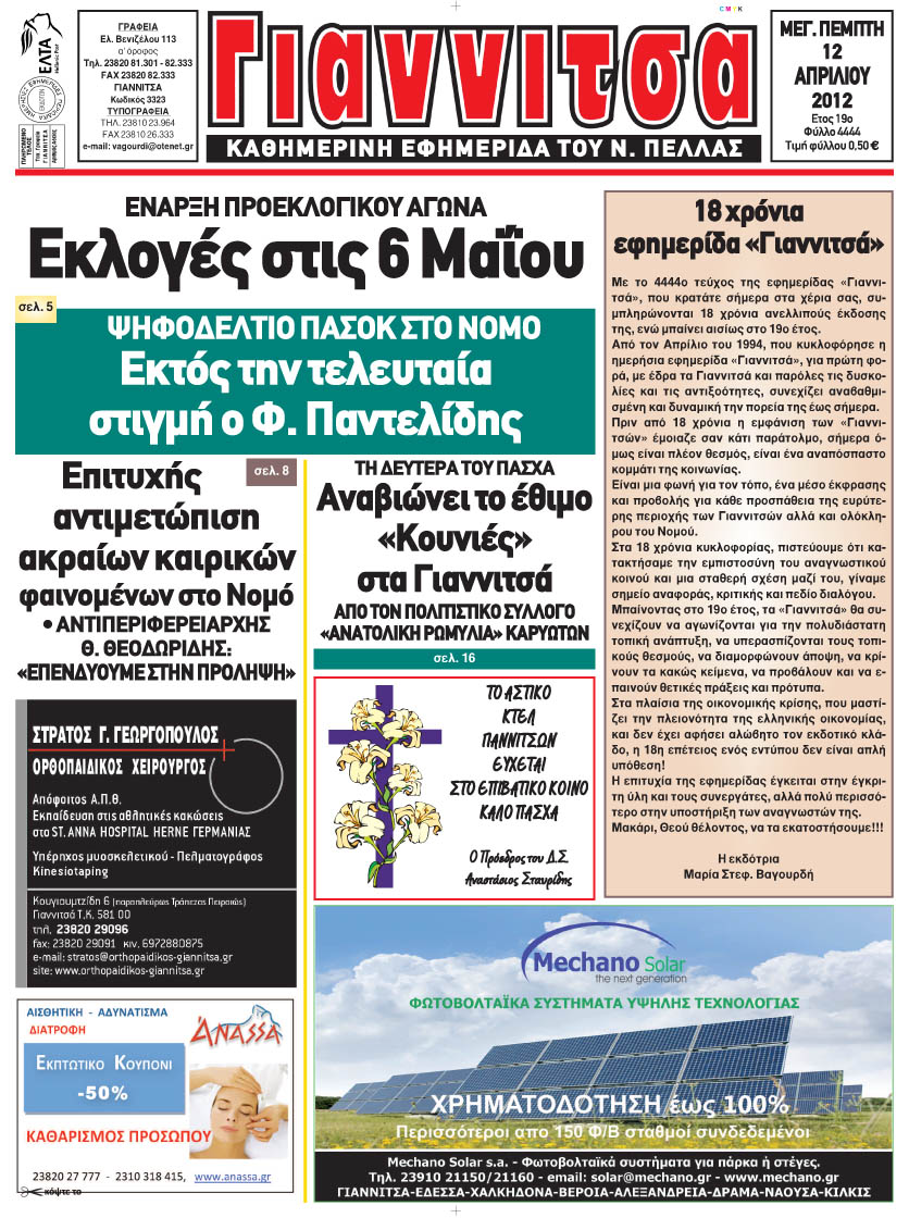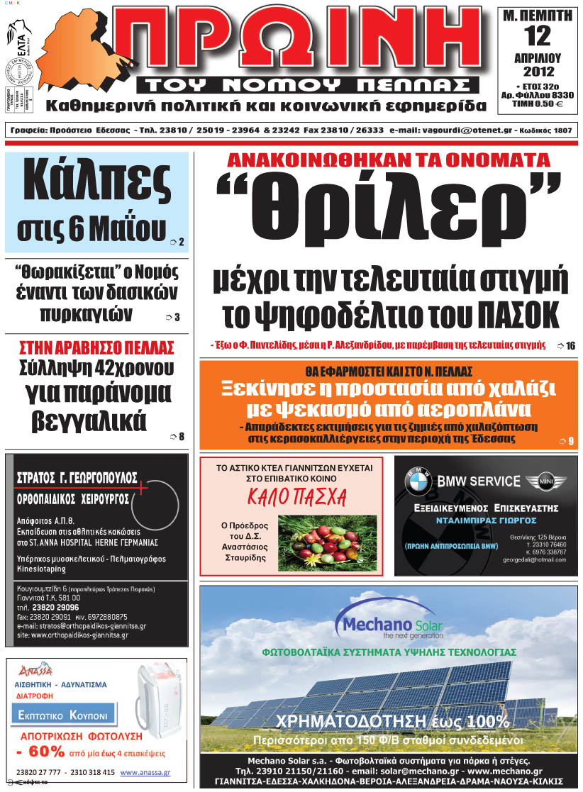 ΠΡΩΤΟΣΕΛΙΔΑ ΑΠΟ ΤΗΝ ΠΕΛΛΑ