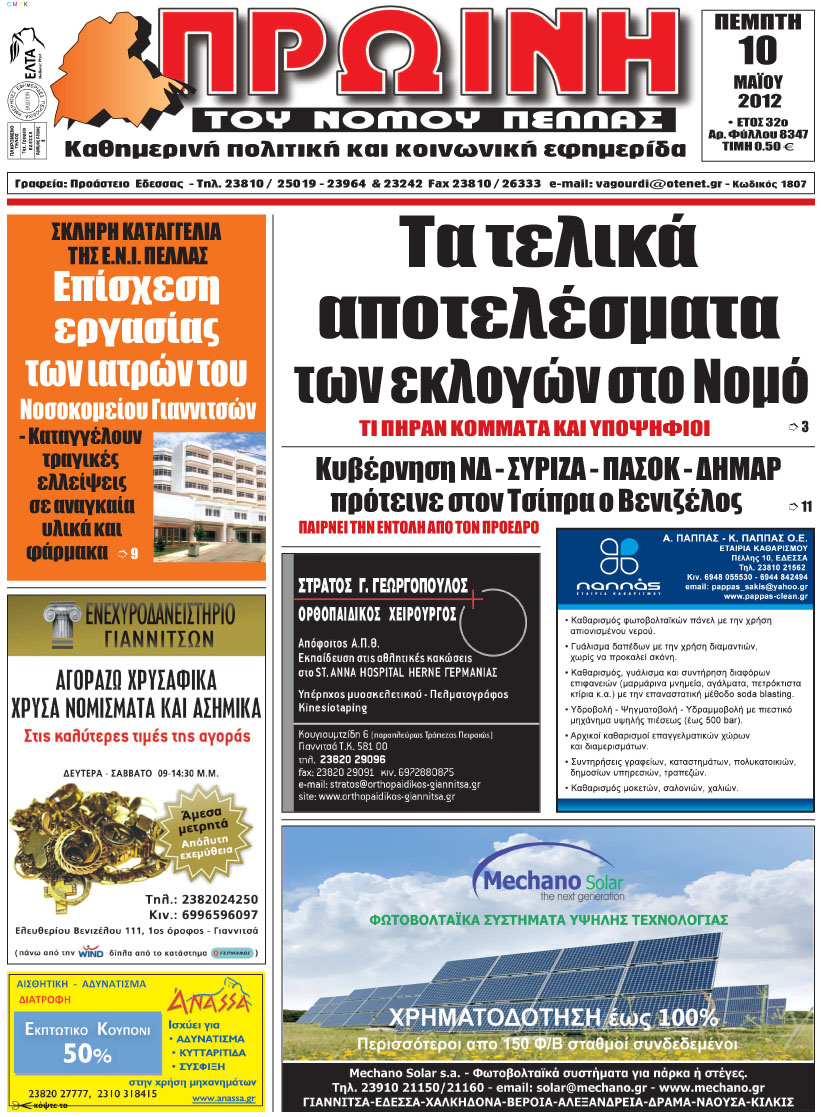 ΠΡΩΤΟΣΕΛΙΔΑ ΠΕΛΛΑΣ 10.05.2012