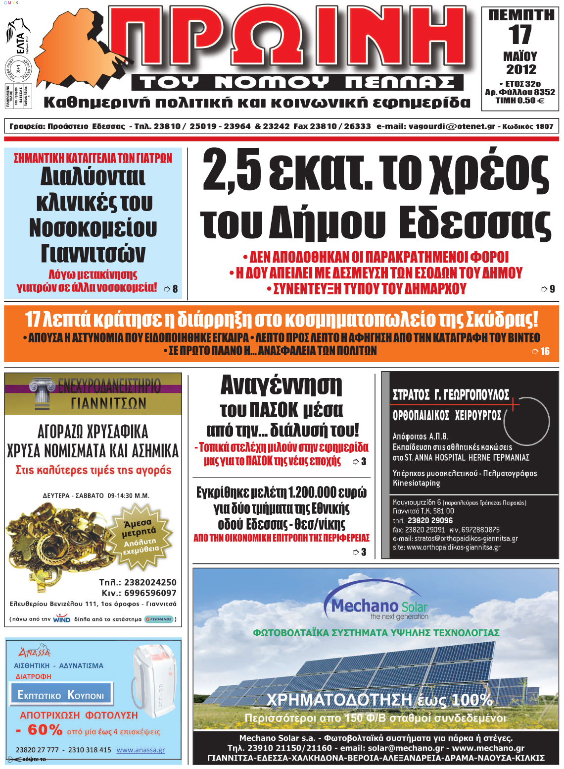 ΠΡΩΤΟΣΕΛΙΔΑ ΑΠΟ ΤΗΝ ΠΕΛΛΑ 17.05.2012