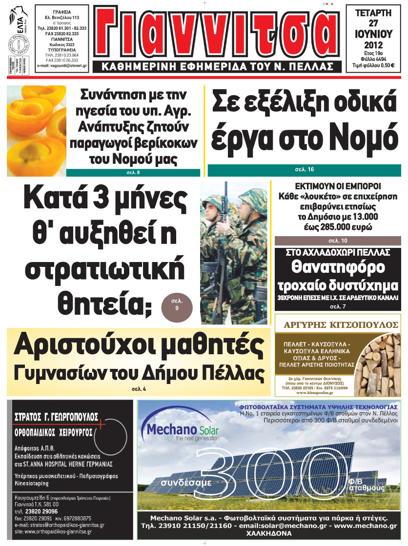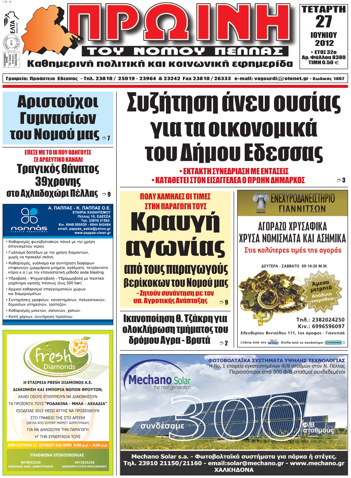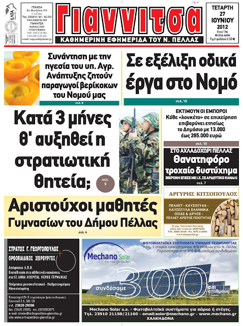 ΠΡΩΤΟΣΕΛΙΔΑ ΠΕΛΛΑΣ 27.06.2012