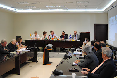 Η σύσκεψη ξεκίνησε με εισήγηση του Αντιπεριφερειάρχη κ. Θεόδωρου Θεοδωρίδη ο οποίος αναφέρθηκε στις πρωτοβουλίες και δράσεις που έχει αναλάβει η Περιφερειακή Αυτοδιοίκηση Πέλλας με στόχο την αντιμετώπιση των επιπτώσεων της κρίσης και της ύφεσης στην πραγματική οικονομία. Όπως τόνισε, υπάρχουν τέσσερα κορυφαία ζητήματα ανάπτυξης τα οποία απαιτούν το σχεδιασμό δράσεων και επειγουσών παρεμβάσεων. Ειδικότερα υπάρχει ανάγκη για ανατροπή του αρνητικού εμπορικού ισοζυγίου το οποίο γεννά συνεχώς χρέη. Χρειάζεται επίσης ενίσχυση της κτηνοτροφίας με στόχο να αποτελέσει ηγετικό κλάδο με βαρύνουσα σημασία στη διατροφή του γενικού πληθυσμού. Τρίτο σημαντικό σημείο είναι η δημιουργία ενός μηχανισμού στήριξης της διοίκησης της ανάπτυξης και, τελευταίο σημείο, η δημιουργία καινοτόμων τουριστικών προϊόντων μέσα από την αξιοποίηση των συγκριτικών πλεονεκτημάτων της ελληνικής φυσικής και πολιτισμικής κληρονομιάς. Ο κ. Θεοδωρίδης μίλησε για τον ειδικό ρόλο που μπορεί να αναλάβει η Περιφερειακή και Τοπική Αυτοδιοίκηση και μίλησε για ένα πλαίσιο μακράς προγραμματικής συνεργασίας μεταξύ Ελλάδας και Γερμανίας με εξειδικευμένες προτάσεις σε επιλεγμένους τομείς ειδικού ενδιαφέροντος.