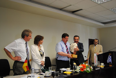 Οι κκ. Δήμαρχοι παρουσίασαν την υφιστάμενη κατάσταση στους Δήμους η οποία δεν εμπνέει αισιοδοξία αν δεν ληφθούν άμεσα μέτρα ενίσχυσης του οικονομικού, παραγωγικού και κοινωνικού ιστού. Ο Πρόεδρος του Επιμελητηρίου ζήτησε τη συμβολή των Γερμανών εταίρων για τη διαμόρφωση ενός θετικού επιχειρηματικού κλίματος για τις ελληνικές εξαγωγικές και εμπορικές επιχειρήσεις.