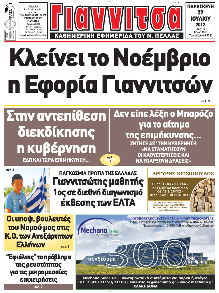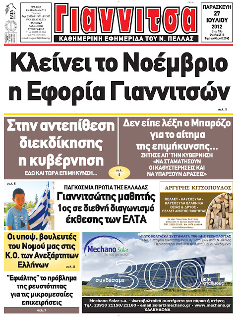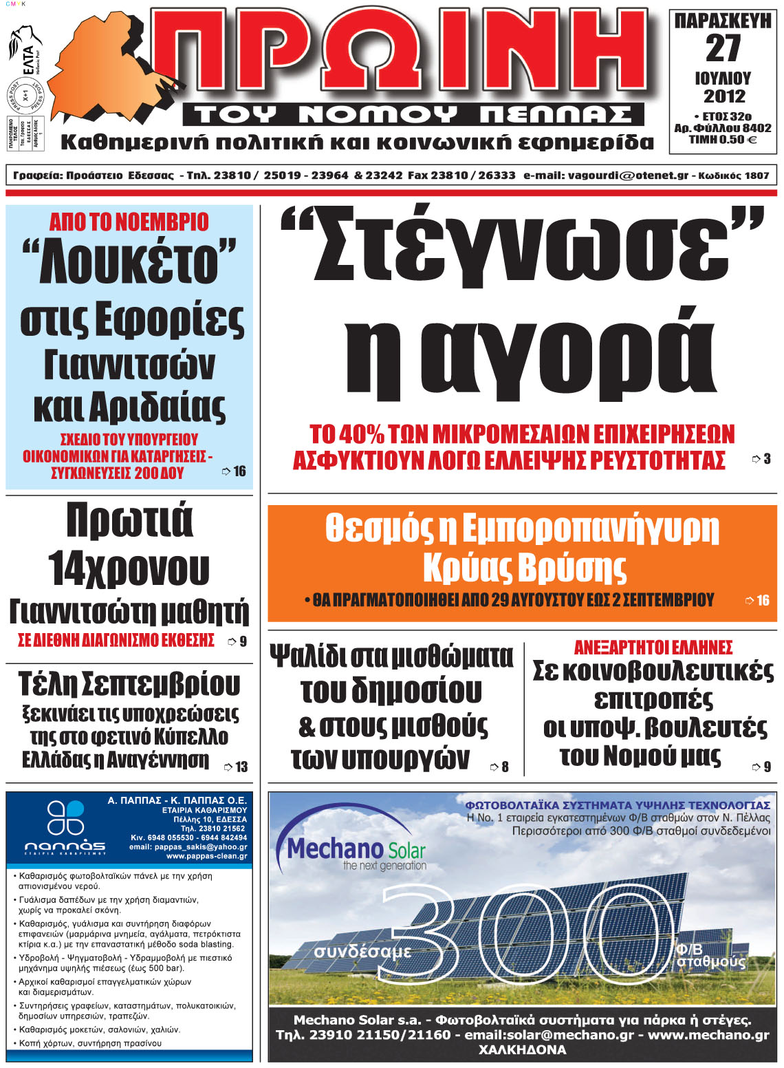 ΠΡΩΤΟΣΕΛΙΔΑ ΠΕΛΛΑΣ 27.07.2012