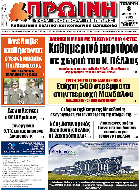 ΠΡΩΤΟΣΕΛΙΔΑ ΠΕΛΛΑΣ 08.08.2012