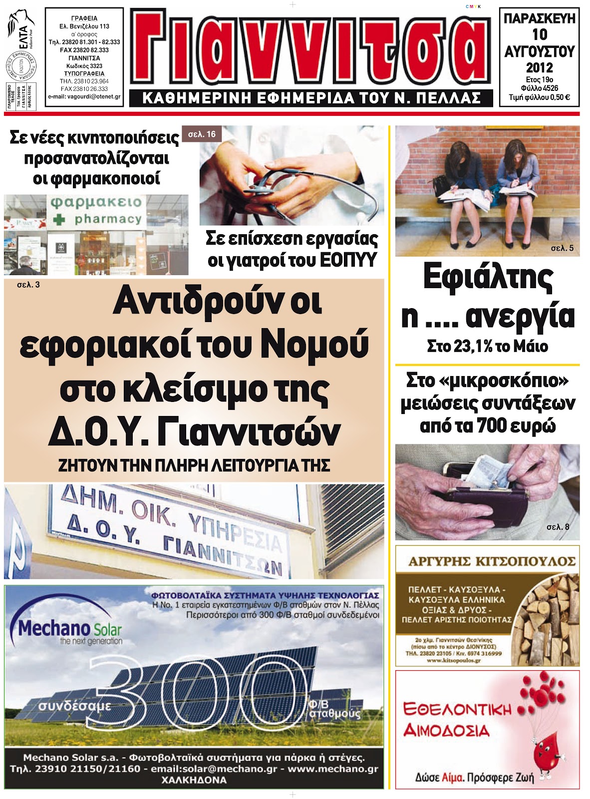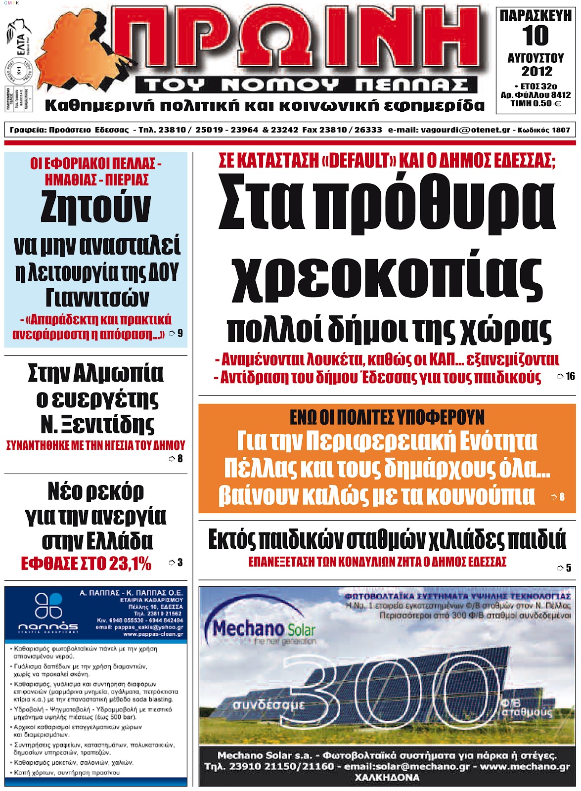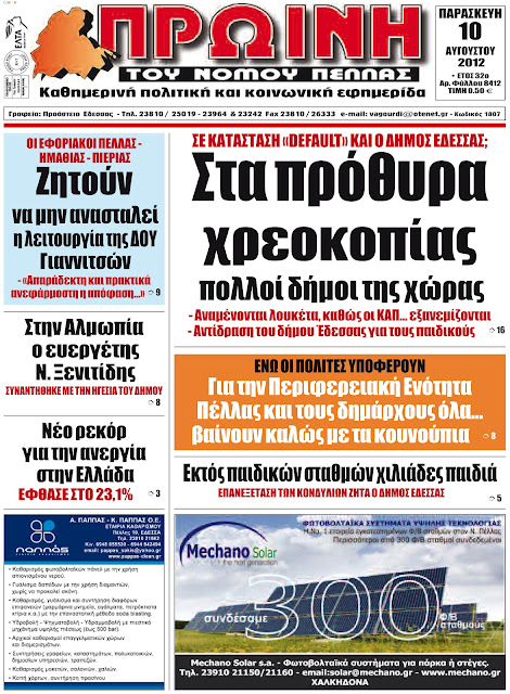 ΠΡΩΤΟΣΕΛΙΔΑ ΠΕΛΛΑΣ 10.08.2012