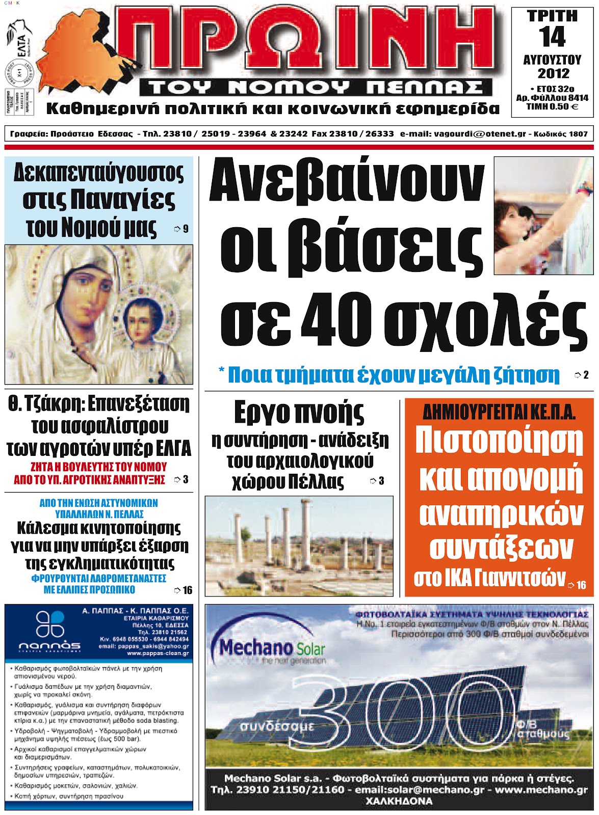 ΠΡΩΤΟΣΕΛΙΔΑ ΠΕΛΛΑΣ 14.08.2012