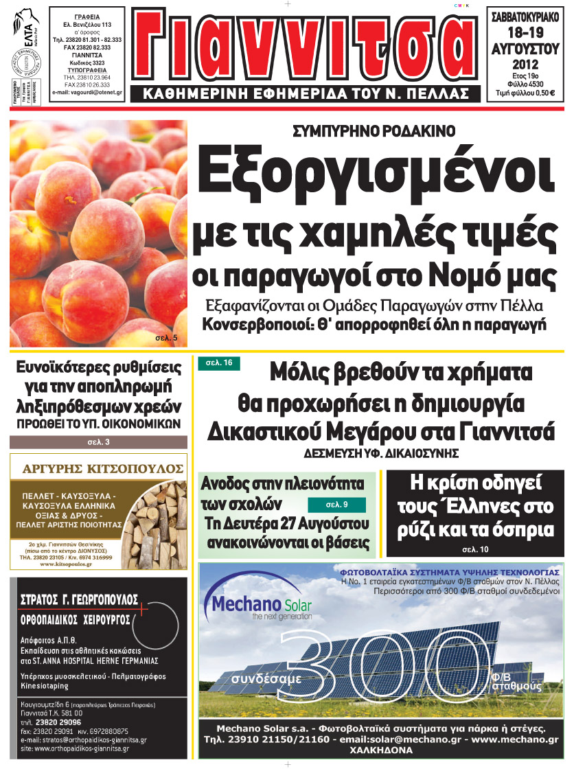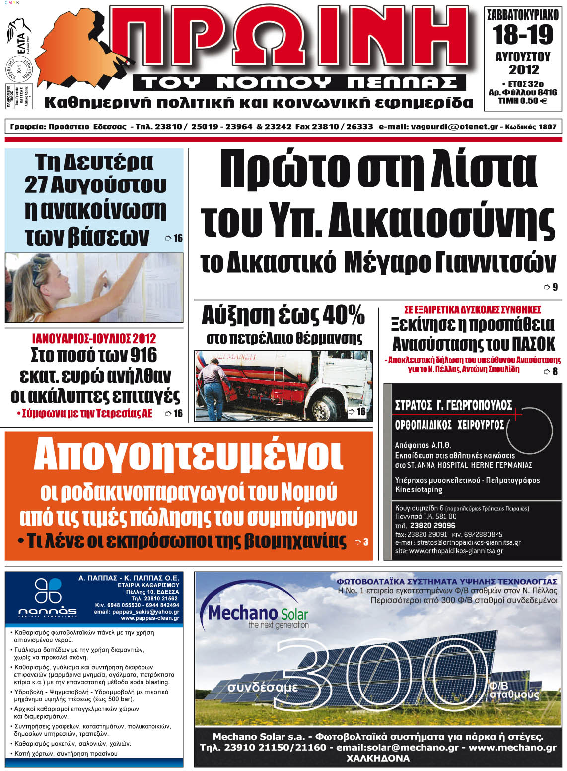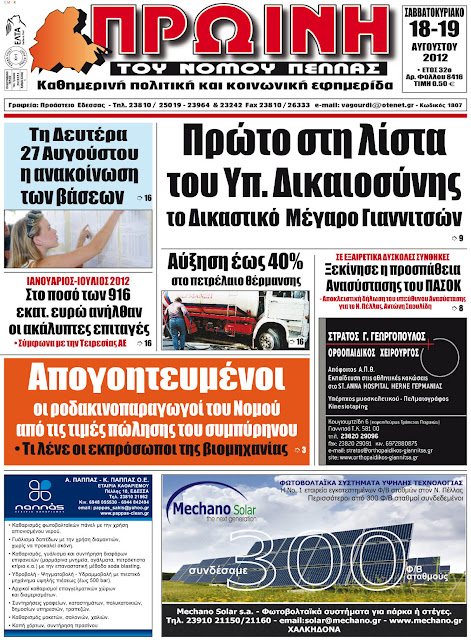 ΠΡΩΤΟΣΕΛΙΔΑ ΠΕΛΛΑΣ 18.08.2012