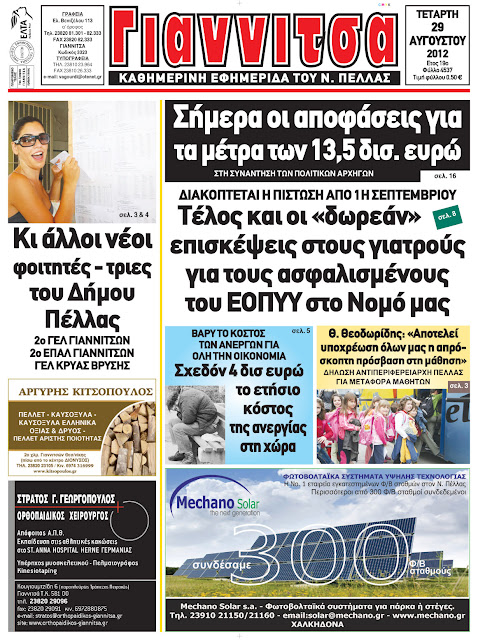 ΠΡΩΤΟΣΕΛΙΔΑ ΠΕΛΛΑΣ 29.08.2012
