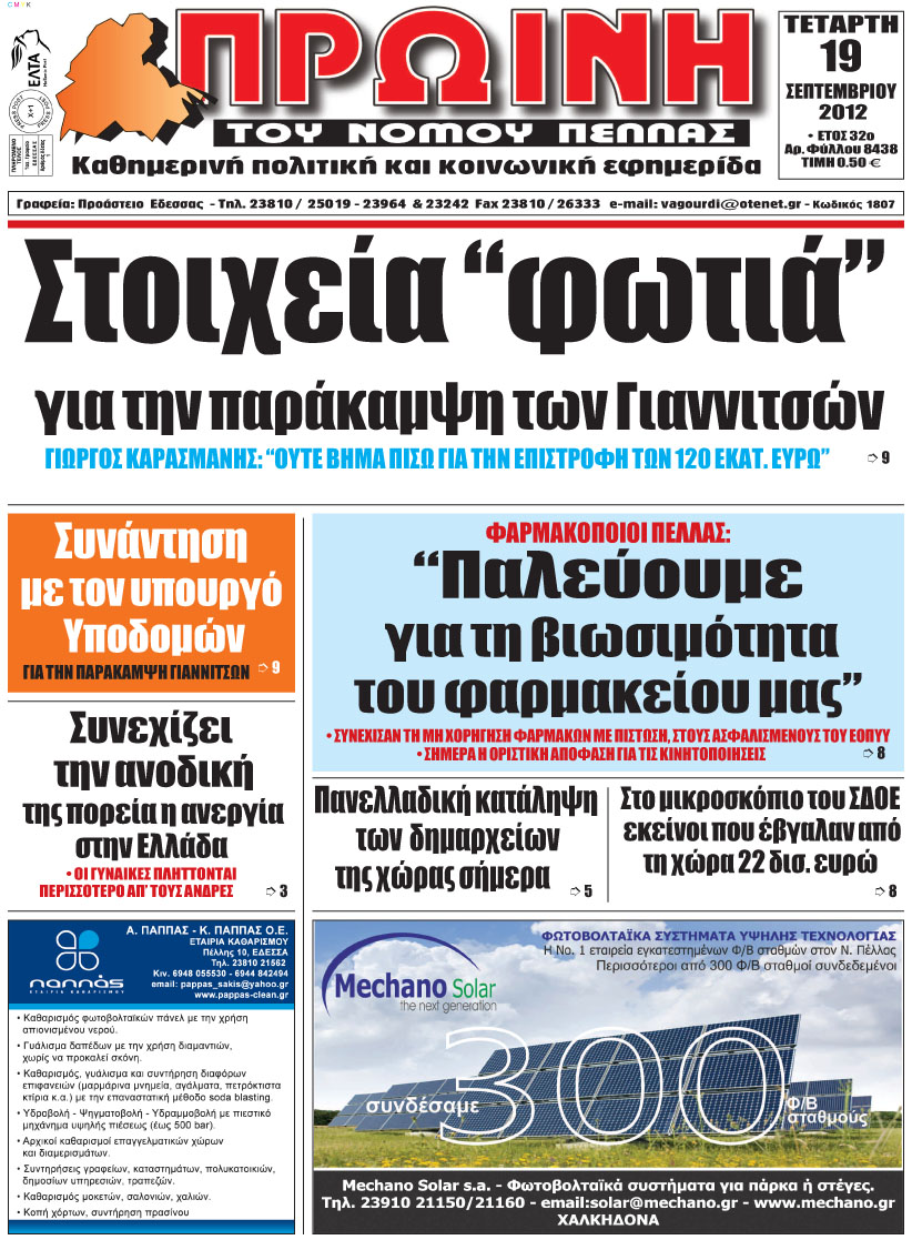 ΠΡΩΤΟΣΕΛΙΔΑ ΠΕΛΛΑΣ 19.09.2012