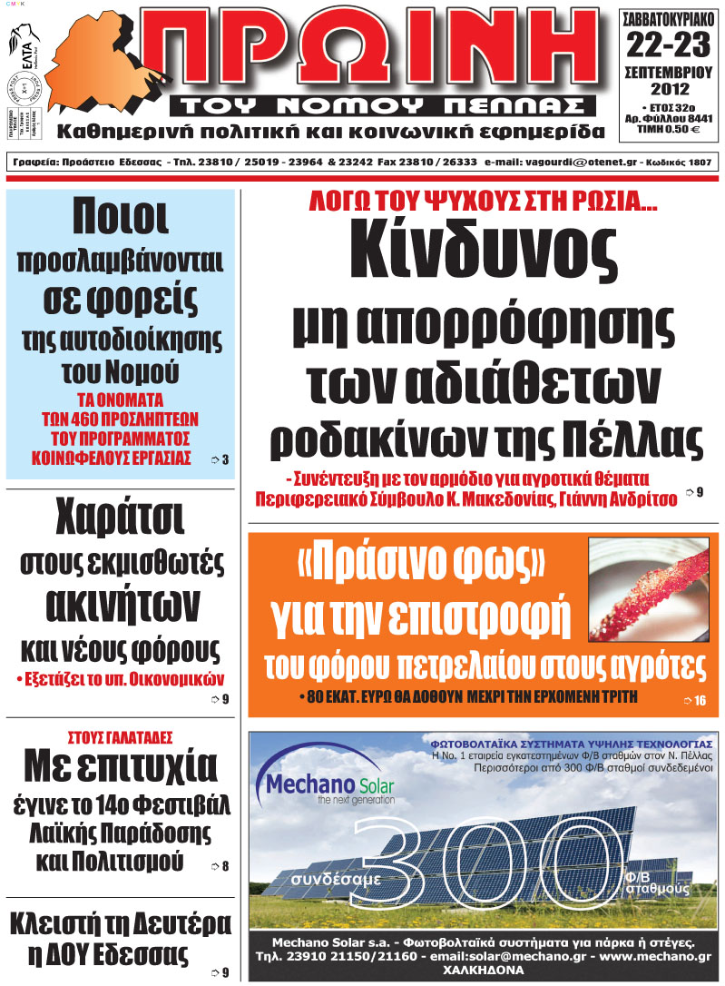 ΠΡΩΤΟΣΕΛΙΔΑ ΠΕΛΛΑΣ 22.09.2012