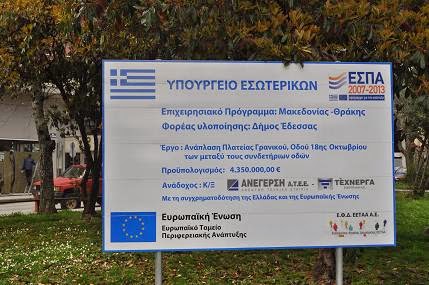 Ένα σημαντικό έργο για την πόλη της Έδεσσας είναι η ανάπλαση της πλατείας Γρανικού, της οδού 18ης Οκτωβρίου και των συνδετήριων οδών, προϋπολογισμού 4.350.000 €, με το οποίο θα αναπλαστεί πλήρως η περιοχή από το Σιδηροδρομικό Σταθμό μέχρι το κέντρο.