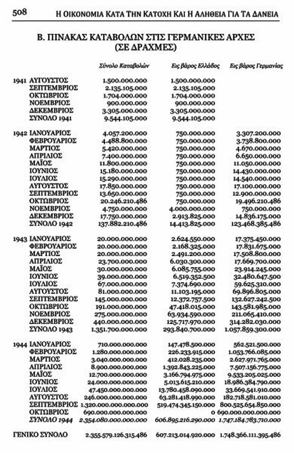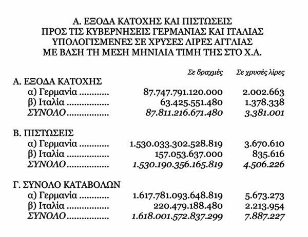 διάστημα της Κατοχής. Το συνολικό ποσόν που αφορά τη Γερμανία ανέρχεται