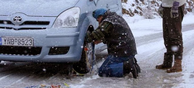 Η κυκλοφορία των οχημάτων, λόγω χιονόπτωσης - παγετού , διεξάγεται μόνο με τη χρήση αντιολισθητικών αλυσίδων: