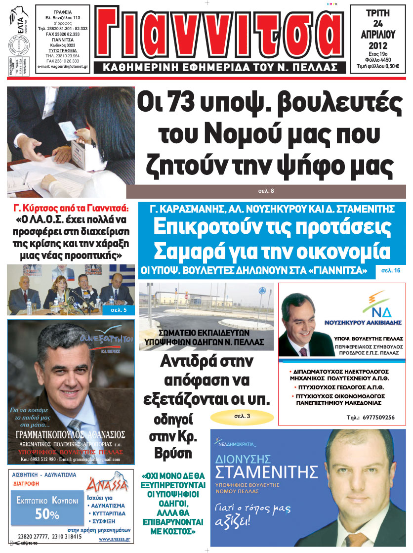 ΠΡΩΤΟΣΕΛΙΔΑ ΑΠΟ ΤΗΝ ΠΕΛΛΑ 24.04.2012