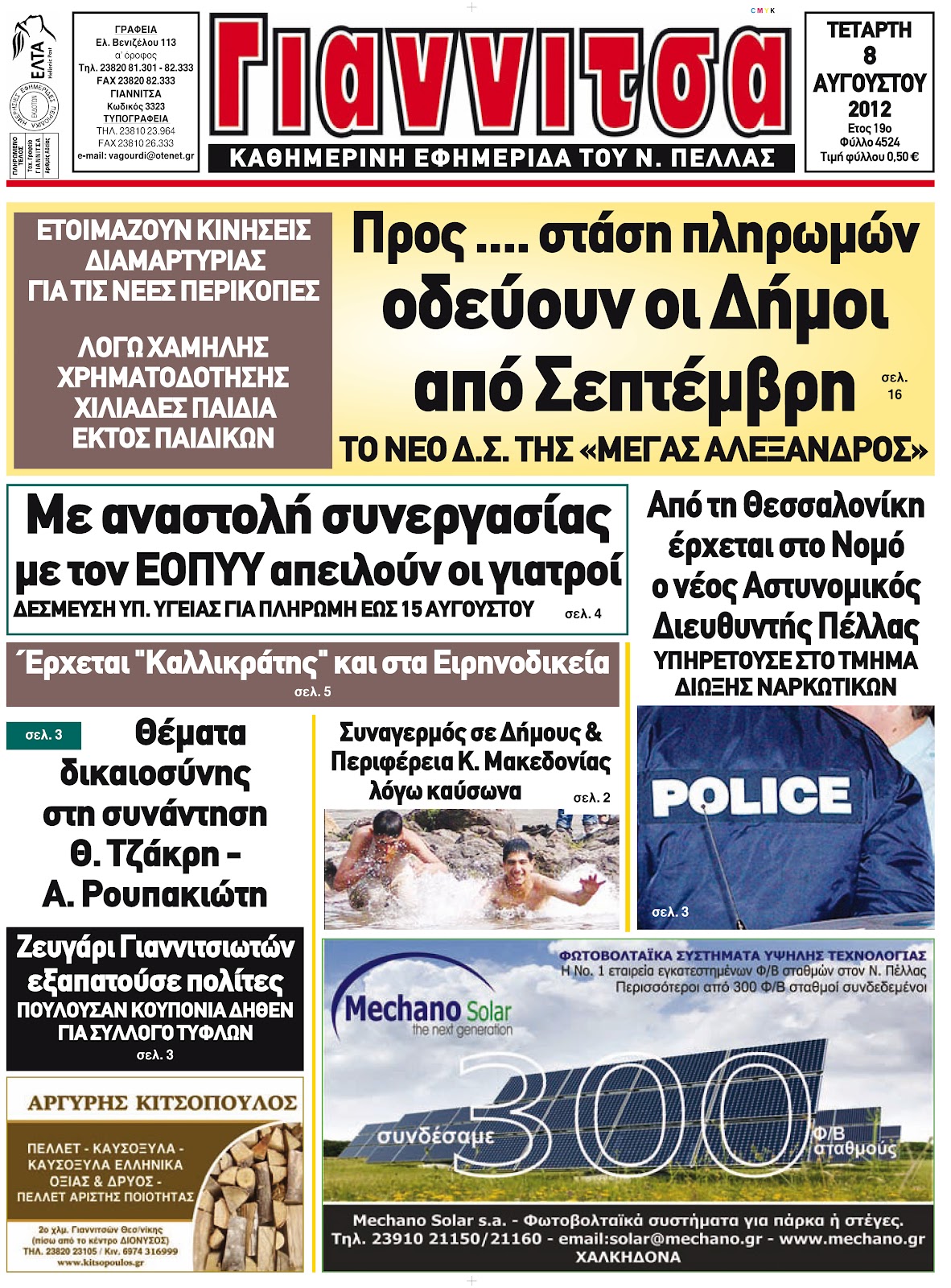 ΠΡΩΤΟΣΕΛΙΔΑ ΠΕΛΛΑΣ 08.08.2012