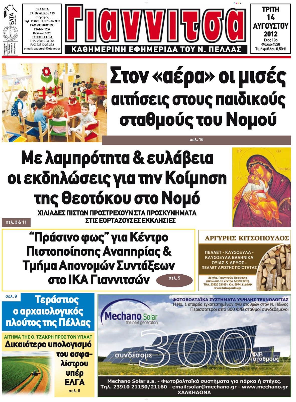 ΠΡΩΤΟΣΕΛΙΔΑ ΠΕΛΛΑΣ 14.08.2012