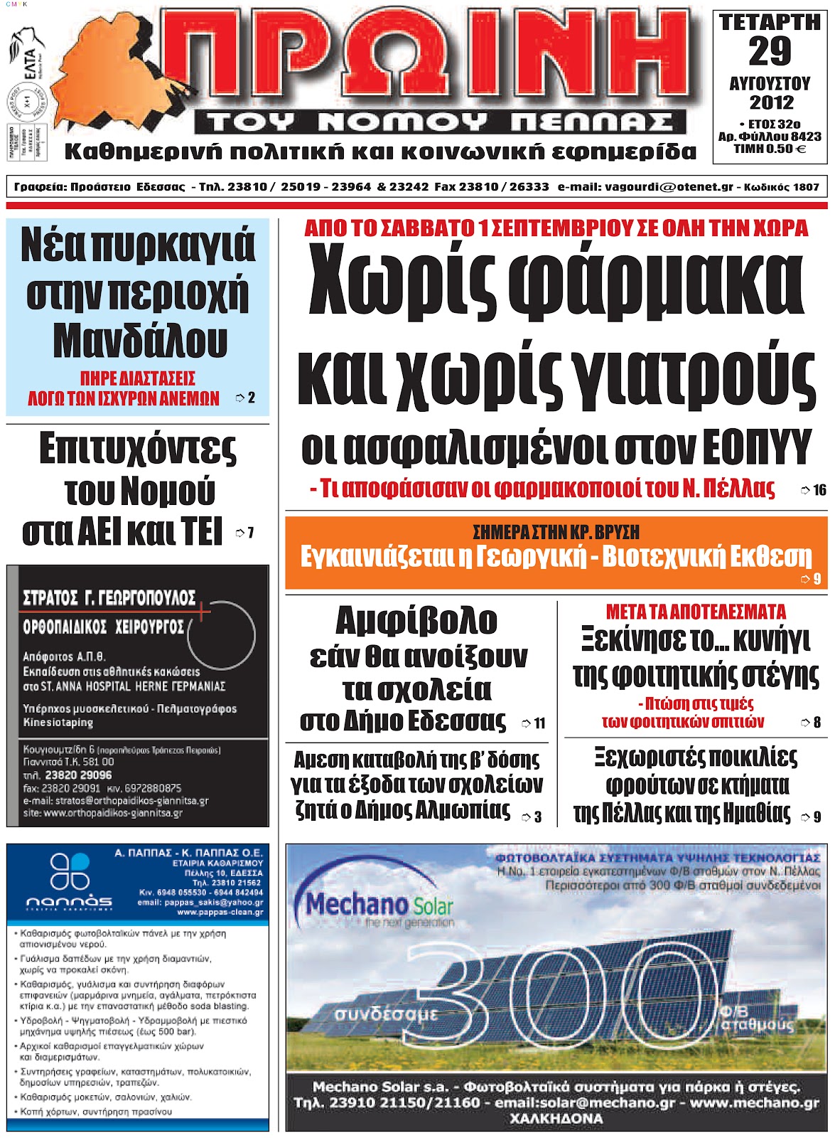 ΠΡΩΤΟΣΕΛΙΔΑ ΠΕΛΛΑΣ 29.08.2012